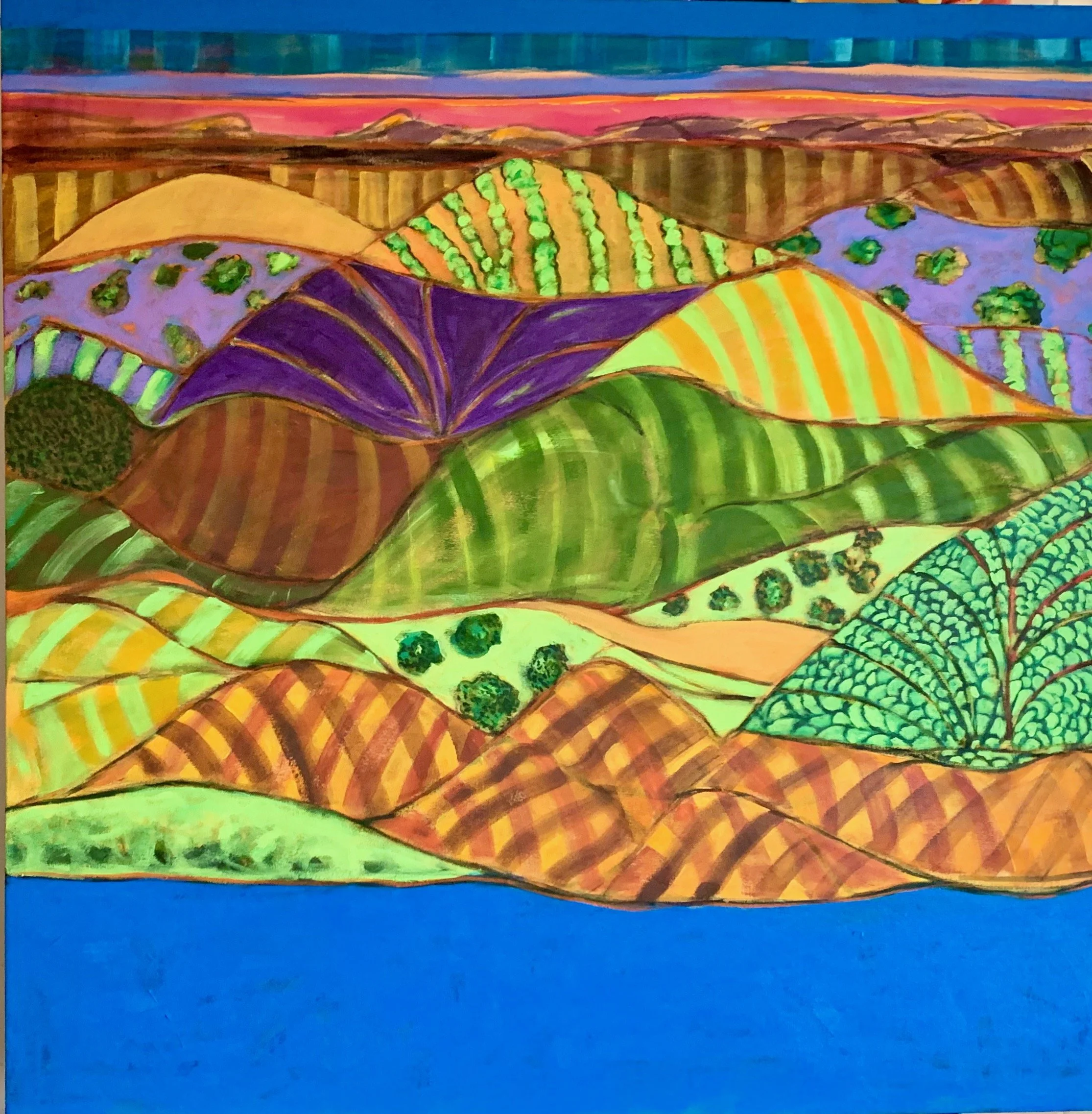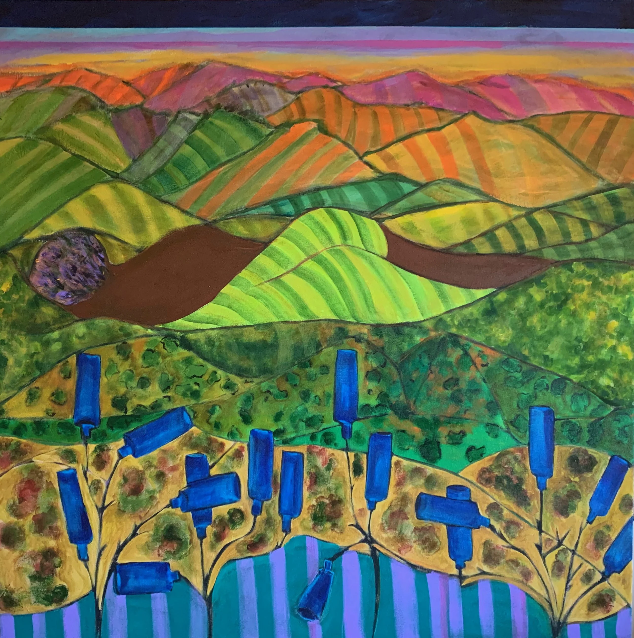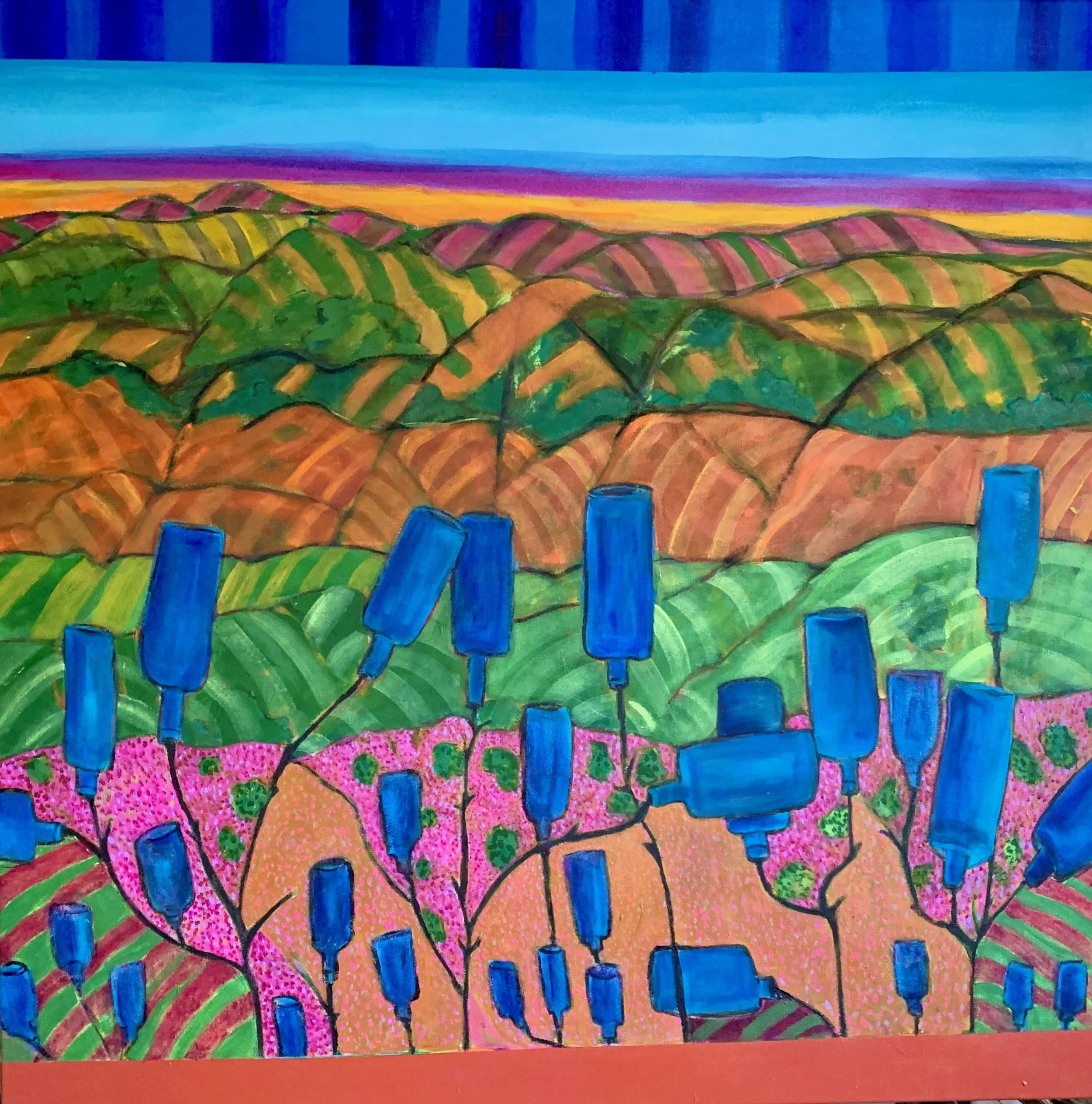 Ode to Arcadia - Blue Bottles - San Gabriel Mountain Series (2025) 48”x48” Acrylic on Canvas
